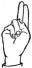 На ћирилици написано МОМИРА ПЕТРОНИЈЕВИЋ састоји се из 18 слова [?]. Исписано ћириличном једноручном азбуком за глувонеме: